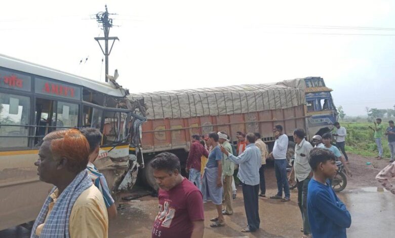 रायपुर-बलौदाबाजार मार्ग पर हाईवे पर ट्रक और यात्री बस की भिड़ंत, 20 से ज्यादा यात्री घायल