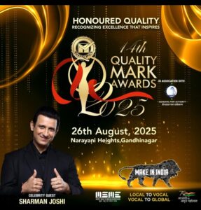 Ahmedabad, 8th August . The 14th edition of the prestigious Quality Mark Awards is set to take place on 26th August 2025 at a grand ceremony at Narayani Heights, Ahmedabad, Gujarat. Organized by Quality Mark Trust, the event will celebrate and honour outstanding achievements and excellence at 14th Quality Mark Awards to Honour Excellence on 26th August in Ahmedabad.The prestigious Quality Mark Awards 2025 will be graced by esteemed dignitaries, including Shri Balvantsinh Rajput, Hon’ble Minister Industries as the Chief Guest, and Shri Mukeshbhai Patel, Hon’ble Minister, as the Guest of Honour. We are also privileged to host Shri Dilip Sanghani, Chairperson of IFFCO, and Shri Sushil Kumar Singh, Chairperson of Deendayal Port, as Distinguished Guests. Adding a touch of star power, renowned Bollywood actor Shri Sharman Joshi will join as the Celebrity Guest, making the event truly memorable.