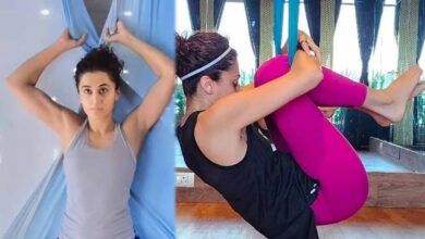 एरियल योग करते हुए एक्ट्रेस तापसी पन्नू ने दिखाई अपनी फिटनेस