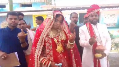 विदाई से पहले नव विवाहित जोड़े ने किया मतदान