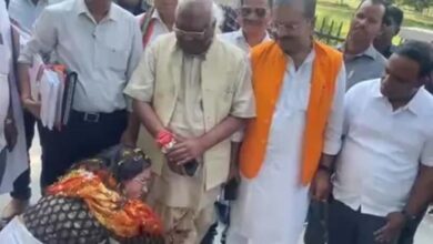 नामांकन के दौरान कांग्रेस की प्रत्याशी शशि सिंह ने भाजपा के प्रत्याशी चिंतामणि महाराज के पैर छूकर आशीर्वाद लिया