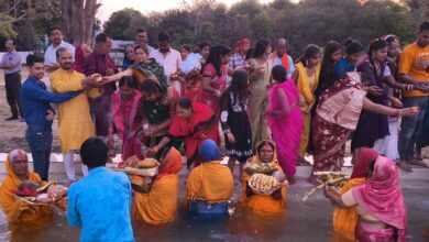 चैत्र छठ पूजा अस्ताचलगामी सूर्य को अर्ध्य अर्पित कर सरस्वती मंदिर छठ घाट पर भव्य आयोजन