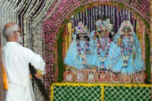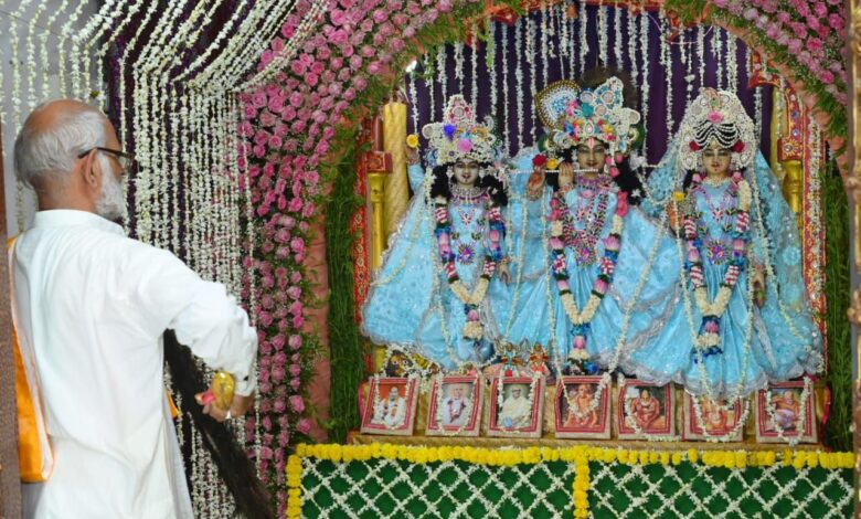 भोपाल, भोपाल 6 जुलाई| श्री गौर राधा मदन गोपाल मंदिर शांति नगर बेरसिया रोड पर आज भगवान जगन्नाथ को कन्नौज से मंगाए गए डेढ़ कुंटल फूल के बंगले में दिव्य श्रृंगार कर विराजित किया गया| आयोजन समिति के प्रमोद नेमा एवं दीपिका माहेश्वरी ने बताया कि शाम 7 बजे श्री राधा कृष्ण एवं भगवान जगन्नाथ बलदेव जी एवं सुभद्रा जी के आलोकिक श्रृंगार के साथ 56 भोग एवं महा आरती के बाद भजन संध्या संपन्न हुई| कल रविवार को दोपहर 1 बजे भगवान जगन्नाथ की भव्य रथ यात्रा मंदिर परिसर से निकाली जाएगी जो बस स्टैंड, मंगलवारा, इतवारा, चौक, लखेरापुरा, सोमवारा से वापस मंदिर परिसर में संपन्न होगी इसके बाद महाप्रसादी का वितरण होगा|