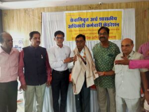 भोपाल 23 जुलाई. सेवानिवृत अर्द्ध शासकीय अधिकारी कर्मचारी फेडरेशन के तत्वाधान मे निगम मंडलों सहकारी संस्थाओं के 70 वर्ष से अधिक उम्र के सेवानिवृत कर्मचारियों अधिकारियों को सम्मानित कर सभी सेवानिवृत अधिकारी कर्मचारियों का आपोलो सेज हॉस्पिटल द्वारा स्वास्थ्य परीक्षण कराया गया सेवानिवृत फेडरेशन के प्रांताध्यक्ष अनिल बाजपेई एवं महासचिव अरुण वर्मा ने बताया की अमर शहीद चंद्रशेखर् आजाद की जयंती के अवसर पर निगम मंडल सहकारी संस्थाओं के 70 वर्ष से अधिक उम्र के 25 सेवानिवृत अधिकारी कर्मचारियों को साल श्रीफल देकर पुष्प मलाओं से सम्मानित किया गया सम्मानित किये गये कर्मचारियों मे ए के व्यौहार पी सी जैन ओ पी सोनी एम एम नागर एस एन शर्मा डी एम श्रीवास्तव हतिम अली अंसारी एस एम हैदर श्रीमती एग्निस अरुण वर्मा घनश्याम मिश्रा राम अवध निषाद शामिल है इसके अलावा अजय श्रीवास्तव चंद्रशेखर परसाई श्यामसुंदर शर्मा गजेंद्र कोठरी रमेश राठौर को कर्मचारी जगत मे विशेष कार्य करने के साल श्रीफल देकर सम्मानित किया गया इस अवसर मे प्रमुख रूप से अजय श्रीवास्तव अनिल बाजपेई चंद्रशेखर परसाई अरुण वर्मा ओ पी सोनी श्याम सुन्दर शर्मा एस सी त्रिपाठी अपोलो हॉस्पिटल सेज ग्रुप के डाक्टर की पुरी टीम निगम मंडल सहकारी संस्थाओं बोर्ड परिषद प्राधिकरण के कर्मचारी अधिकारी भारी संख्या मे उपस्थित थे कार्यक्रम की अध्यक्षता अनिल बाजपेई अजय श्रीवास्तव चंद्रशेखर परसाई द्वारा किया गया कार्यक्रम का संचालन श्याम सुंदर शर्मा द्वारा किया गया इस अवसर मे विशिष्ट अतिथि के रूप मे कर्मचारी नेता गजेंद्र कोठरी संतोष मिश्रा उपस्थित थे अंत मे आभार वरिष्ठ कर्मचारी नेता फेडरेशन के महासचिव अरुण वर्मा द्वारा कार्यक्रम उपस्थित कर्मचारियों अधिकारियों का आभार व्यक्त किया गया अरुण वर्मा बताया की निकट भविष्य मे निगम मंडलों के 12 वीं मे 75% अंक लाने वाले मेधावी छात्रों का सम्मान किया जायेगा