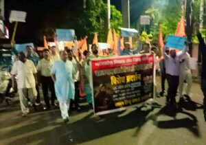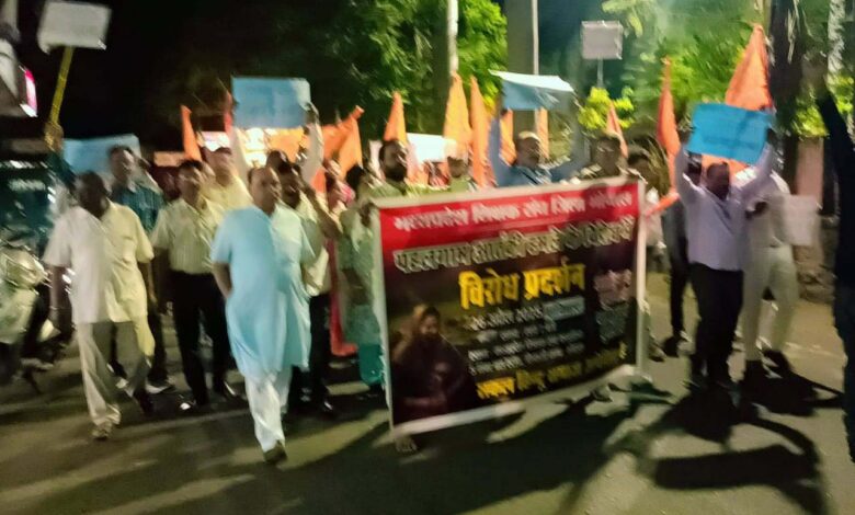 26 अप्रेल को सायं सात बजे मध्य प्रदेश शिक्षक संघ के तत्वाधान में प्रदेश कार्यालय 5 नम्बर बस स्टॉप दुर्गा पेट्रोल पंप के सामने पहलगाम की घटना के विरोध में आतंकबाद का पुतला दहन कर प्रदर्शन किया गया । पुतला दहन करने से पहले प्रदेश अध्यक्ष डॉ क्षत्रवीर सिंह राठोर ने इस आक्रोश सभा को संबोधित करते हुये कहा कि मुस्लिम आतंकियों ने धर्म पूछ कर गोलियां बरसा के निर्दोष हिन्दू पर्यटकों की बर्बर हत्या कर देने के वाले पाक आतंकियो को अब छोड़ा नहीं जायेगा । और इस घटना के बाद देश में छिपे छद्म आतंकी सचेत हो जाएं अब वे भी बचेंगे नहीं । आतंकबाद का पुतला दहन से पहले पाँच नम्बर मार्केट के दुकानदार भाइयों से आव्हान किया कि वे भी इस प्रदर्शन में सामिल हों । इसी क्रम में मध्यप्रदेश शिक्षक संघ के पदाधिकारियों और कार्यकर्ताओं ने विशाल संख्या मे एकत्रित होकर रैली निकाली गई और विरोध प्रदर्शन में आतंकवाद की शरणस्थली पाकिस्तान का पुतला जलाया गया ।