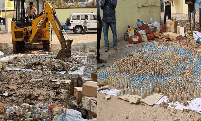अवैध शराब पर चलाया बुलडोजर: कोर्ट के आदेश के बाद कार्रवाई, 1783 लीटर शराब की नष्ट