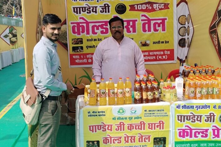भोपाल। पांडे जी कच्ची घानी अयोध्या बायपास मोहली गांव भोपाल के सामने स्थित है। यहां पर पांडेय जी कच्ची घानी कोल्ड प्रेस आयल से शुद्ध खाद्य तेल उपलब्ध हैं। राजधानी के टी टी नगर दशहरा ग्राउंड में प्रदर्शनी लगाई गई। पांडेय कच्ची घानी के संचालक आर एस पांडेय ने बताया कि हमारे यहां सरसों, तिल और सोयाबीन के शुद्ध तेल उपलब्ध हैं । हम आउटलेट है साथ ही ऑनलाइन भी विक्रय करते हैं। आर एस पांडेय ने बताया कि हम सरसों,तिल और मूंगफली की पेराई करके शुद्ध तेल उपलब्ध कराते हैं इसके अलावा हमारे आउटलेट पर खाली भी उपलब्ध है।