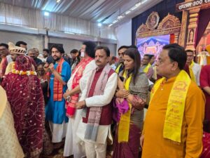 उप मुख्यमंत्री राजेंद्र शुक्ल आज महाशिवरात्रि के पावन अवसर पर बागेश्वर धाम सिद्ध पीठ आश्रम में सप्तम कन्या विवाह महोत्सव के दैवीय प्रयोजन में सपत्नीक शामिल हुए