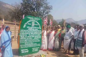 सरायकेला जिले के कुचाई प्रखंड अंतर्गत छोटा बांडी गांव में सामुदायिक वन संसाधन प्रबंधन समिति के तत्वावधान में पारंपरिक तरीके से वनाधिकार पत्थलगड़ी कार्यक्रम का आयोजन किया गया. कार्यक्रम के दौरान पत्थलगड़ी स्थल पर पाहन सुरेंद्र सोय ने विधिवत पूजा-अर्चना की. इसके बाद उपस्थित ग्रामीणों ने जंगल और जैव विविधता के संरक्षण का सामूहिक संकल्प लिया.