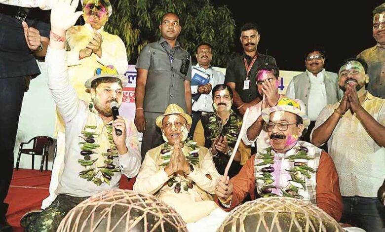 रायपुर प्रेस क्लब के होली मिलन समारोह में मुख्यमंत्री विष्णुदेव साय भी पूरे रंग में रमे रहे। परम्परागत ढंग से कटहल,कद्दू व भटे की माला पहनाकर उनका स्वागत किया गया। टोपी भी पहनी दूसरों को पहनाई और रंग गुलाल लगाया। जैसे ही उपमुख्यमंत्री अरूण साव पहुंचे नगाड़ा बजाने व फाग गाने की महफिल सभी ने जमाई,तो युवा विधायक अनुज शर्मा ने अपने चिर परिचित अंदाज में एक से बढकर एक गानों की झड़ी लगा दी और हर कोई झूमने मजबूर हो गए। सांसद सुनील सोनी,विधायक पुरंदर मिश्रा,कांग्रेस संचार विभाग के प्रमुख सुशील आनंद शुक्ला,भाजपा मीडिया इंचार्ज चिमानानी समेत राजनीतिक दल के प्रतिनिधि मंच पर आसीन थे। होली की हंसी ठिठोली में जमकर चली शब्द भेदी बाण झेलने हर किसी को मजबूर होना पड़ रहा था .वहीं रंग गुलाल के साथ हर कोई अपने को रंगीन बनाने में लगे रहे। इससे पहले शानदार सांस्कृतिक होली फुहार वाले कार्यक्रम भी हुए। सुधीर आजाद तंबोली व उनकी टीम द्वारा तैयार सेंशलेस टाइम्स का मुख्यमंत्री ने विमोचन किया। जिसमें होली की रंग बिरंगी खबरे प्रकाशित की गई है।