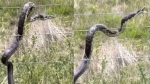 आप देख सकते हैं कि एक जंगल जैसे इलाके में कुछ तार लगे हुए नजर आते हैं और उन तारों के ऊपर एक सांप चढ़ने की कोशिश करता नजर आता है. आमतौर पर ये तार देखने में तो ऐसे लगते हैं जैसे किसी ने उनकी मदद से बाड़ा बनाया हो, लेकिन सबसे ऊपर जो तार लगा हुआ होता है, उसमें करंट होता है. अब सांप को तो ये पता नहीं होता कि उस तार में करंट है, ऐसे में वो बार-बार उस तार के ऊपर चढ़ने की कोशिश करता है और हर बार उसे बिजली का झटका लगता है. वो तो गनीमत रही कि सांप उस तार से चिपका नहीं, वरना करंट की वजह से सीधे उसकी जान ही निकल जाती.