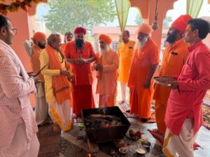 वैदिक विधि विधान पूर्वक मंदिर शिखर पर,कलश, की स्थापना श्री महंत 1008 श्री कन्हैया दास जी महाराज के मार्गदर्शन में पंडित गंगा प्रसाद आचार्य के आचार्यत्व, एवं पंडित श्री नारायण प्रसाद जी आचार्य के सानिध्य में वैदिक विधान पूर्वक त्रिदिवसीय प्राण प्रतिष्ठा का कार्यक्रम संपन्न हुआ श्री उदासीन आश्रम मंदिर मरघटिया,महावीर, शाहजहानाबाद के पूर्व महंत ब्रह्मलीन श्री शंकर दास जी महाराज की मूर्ति की स्थापना एवं श्री हनुमान जी महाराज की अचल प्राण प्रतिष्ठा के अवसर पर संत महापुरुषों एवं विद्वानों,तथा, भक्तों ने पुनीत अवसर पर महा अभिषेक पूजन अर्चन, पिठार्चन, देव आवाहन,व, विभिन्न अधिवास, औषधि अनेक तीर्थ के,जल, पंचगव्य पंचामृत, सप्तमृतिका, सप्तधान्य,तथा, पंचरत्न आदि से मूर्तियों का स्नापन,
