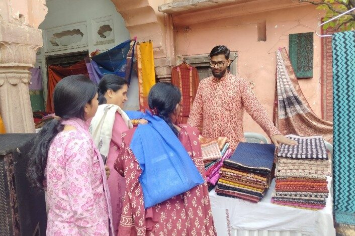 भोपाल। युवा उद्यमी मोइनुद्दीन खत्री ने कहा कि बाग प्रिंट साड़ियां सूट और कपड़े तैयार करना उनका पुश्तैनी धंधा है। कई पीढ़ियों से यह व्यवसाय किया जा रहा है । मोइनुद्दीन खत्री ने कहा कि मैंने निफ्ट से पढ़ाई की और बाग प्रिंट को नए तरीके से पेश कर रहा हूं। हमारे पास कॉटन और सिल्क की साड़ियां और सूट उपलब्ध हैं । यह हम घर पर ही तैयार करते हैं और प्रदर्शनी के साथ ही ऑनलाइन भी बिक्री करते हैं। इस तरह के प्रदर्शनियों में और अन्य जगह भी ऑनलाइन आपूर्ति करने पर लोग हमारे उत्पाद की सराहना करते हैं और बाग प्रिंट की अच्छी मांग है।