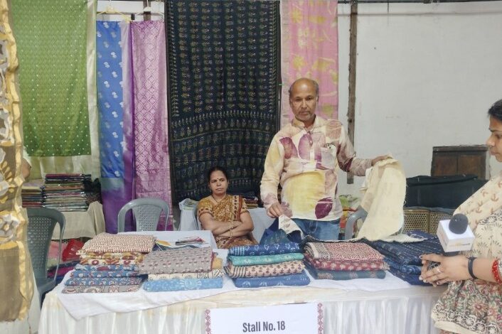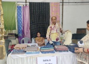 भोपाल, नीमच से आए मूलचंद श्रवणेकर ने बताया कि वह हाथ से बड़ी बनी हुई साड़ियां तैयार करते हैं। खुद ही साड़ी डिजाइन करते हैं उनके पास सिल्क और कॉटन की साड़ियां मौजूद हैं । इसके अलावा विभिन्न प्रकार के डिजाइनों से तैयार करके साड़ियां तैयार की जाती हैं । श्रवणेकर ने बताया कि उनका उनके घर पर ही कारखाना है और रॉ मटेरियल से वह साड़ियां और सूट का निर्माण करते हैं। उन्होंने कहा कि वह होलसेल का व्यवसाय करते हैं साथ ही इस तरह की प्रदर्शनियों में अपना उत्पाद पेश करते हैं कोई ऑनलाइन भी मांग करता है तो सप्लाई की जाती है।