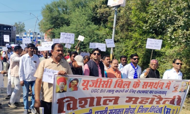 एससी एसटी एवं ओबीसी,संयुक्त मोर्चा विदिशा ने रैली निकालकर प्रधानमंत्री एवं राष्ट्रपति के नाम यूजीसी के समर्थन में कलेक्टर को सौंपा ज्ञापन