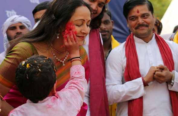 वरिष्ठ बॉलीवुड एक्ट्रेस हेमा मालिनी एक्ट्रेस होने के साथ-साथ ट्रेंड डांसर और राजनीतिज्ञ भी हैं। उन्होंने हाल ही में अपनी सुरीली आवाज में गाना गाकर अपने फैंस को फिर से अपना दीवाना बना लिया। एक वीडियो में हेमा मालिनी एक खूबसूरत साड़ी में बहुत प्यारी लग रही हैं। उन पर लगे फूल और रंग इस बात के गवाह हैं कि उन्होंने उत्तर प्रदेश के वृन्दावन में अपने फैंस और दोस्तों के साथ होली खेली है।