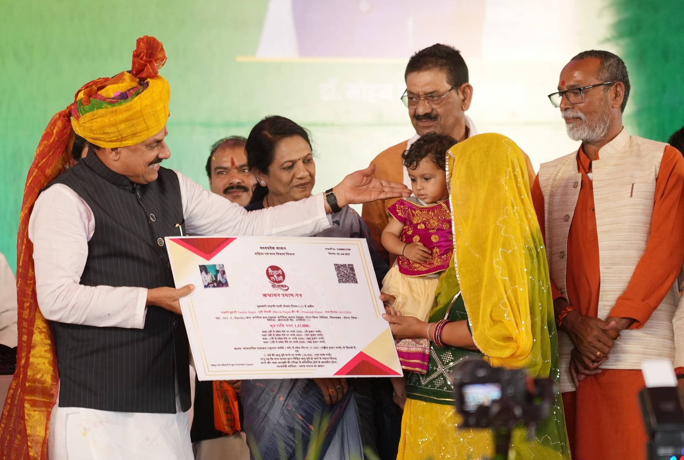 मुख्यमंत्री डॉ. यादव का पारंपरिक साफा बांधकर एवं गजमाला से आत्मीय स्वागत किया गया। मुख्यमंत्री डॉ. यादव ने लाड़ली लक्ष्मी योजना, मुख्यमंत्री नरवाई प्रबंधन योजना, प्रधानमंत्री जीवन बीमा, मुद्रा योजना, कृषि यंत्र, पशुधन, खाद्य प्रसंस्करण योजनाओं के हितग्राहियों को हितलाभ वितरित किए।