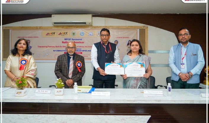 भोपाल। Madhya Pradesh Council of Science and Technology (MPCST) द्वारा प्रायोजित राष्ट्रीय संगोष्ठी का आयोजन LNCT University, भोपाल के स्कूल ऑफ फार्मेसी एवं स्कूल ऑफ फार्मास्युटिकल साइंसेज़ द्वारा को किया गया। संगोष्ठी का शुभारंभ डॉ एन के जैन पूर्व प्रोफेसर, Dr. H. S. Gour University, सागर के मुख्य आतिथ्य में हुआ। डॉ. जैन ने मुख्य वक्ता के रूप में ड्रग डिलीवरी रिसर्च विषय पर एक उपयोगी एवं ज्ञानवर्धक व्याख्यान प्रस्तुत किया। कार्यक्रम में अन्य वक्ताओं के रूप में Dr. Keerti Jain, National Institute of Pharmaceutical Education and Research Raebareli से तथा Mahendra Joshi, Cerebral Lab Private Limited ने भी अपने उत्कृष्ट व्याख्यानों के माध्यम से प्रतिभागियों को महत्वपूर्ण जानकारी प्रदान की। इस अवसर पर फार्मेसी के क्षेत्र में उत्कृष्ट योगदान के लिए डॉ. एन. के. जैन को लाइफ टाइम अचीवमेंट अवार्ड से सम्मानित किया गया। कार्यक्रम में डॉ एन के थापक कुलपति, एलएनसीटी यूनिवर्सिटी विशिष्ट अतिथि के रूप में उपस्थित रहे। कार्यक्रम के संयोजक डॉ ए के सिंघई के साथ ही इस राष्ट्रीय संगोष्ठी में लगभग 300 से अधिक प्रतिभागियों ने भाग लिया।