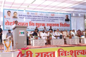उप मुख्यमंत्री श्री शुक्ल ने कहा कि वर्तमान में खान-पान एवं जीवनशैली ठीक नहीं होने के कारण बीमारियों का प्रकोप बढ़ा है। हमें जीवन में योग, प्राणायाम अपनाने के साथ ही धरती को सेहतमंद बनाने के लिए प्राकृतिक खेती की ओर बढ़ना होगा। गोबर और गौमूत्र से धरती को सेहतमंद बनाकर शुद्ध अन्य उपजाकर सेवन करने से स्वास्थ्य में भी सुधार होगा। आपने कहा कि दूषित जल से अनेकों जल जनित बीमारियां जन्म लेती हैं। साशन द्वारा इन बीमारियों से बचाव हेतु जन जीवन मिशन के तहत घर-घर शुद्ध जल पहुचाने का कार्य किया जा रहा है। प्राकृतिक खेती स्वस्थ समाज और धरती के लिए अत्यंत महत्वपूर्ण है। प्रधानमंत्री एवं प्रदेश के मुख्यमंत्री द्वारा किसानों को प्राकृतिक खेती के लिए निरंतर प्रोत्साहित किया जा रहा है, जिससे समाज स्वस्थ होगा और अस्पतालों में रोगियों की संख्या कम होगी। उन्होंने कहा कि प्रदेश सरकार स्वास्थ्य शिक्षा और रोजगार की दिशा में प्रमुखता से कार्य कर रही है। प्रदेश में स्वास्थ्य सेवाओं को प्रभावी बनाया जा रहा है। लगातार मेडिकल कॉलेजों की संख्या बढ़ रही है। सरकार का लक्ष्य है कि सभी संसदीय क्षेत्रों में मेडिकल कॉलेज संचालित हों। श्री शुक्ल ने रोटरी राहत शिविर की सराहना करते हुए कहा कि चलित अस्पताल आपके क्षेत्र में आया है इसका लाभ समाज के सभी वर्गों को दिया जाए। उन्होेने जिला प्रशासन को निर्देश दिए कि ब्लाइंड बच्चों की पहचान कर एवं बाल ह्रदय के पीड़ित बच्चों का स्वास्थ्य परीक्षण इस शिविर के माध्यम से कराया जाए।