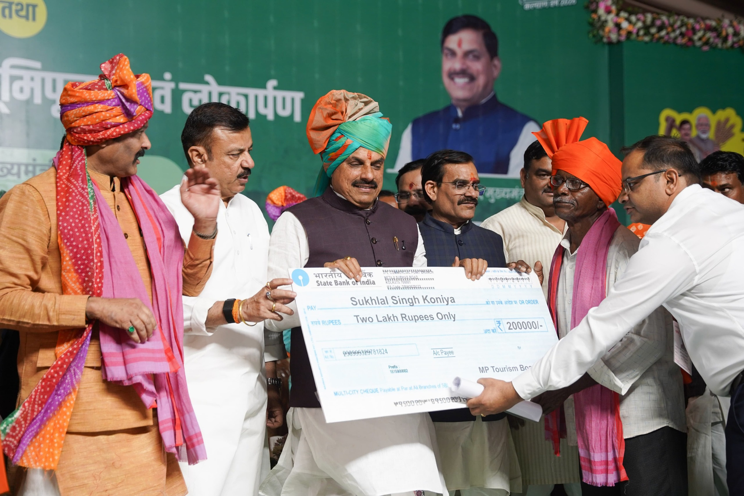 मुख्यमंत्री डॉ. यादव ने जल गंगा संवर्धन अभियान के अंतर्गत बड़े तालाब के सौंदर्यीकरण की सौगात दी एवं उन्होंने विभिन्न योजनाओं के पात्र हितग्राहियों को हितलाभ वितरित किये। मुख्यमंत्री डॉ. यादव ने श्री विजयनाथ धाम की नगरी बरही में आयोजित किसान सम्मेलन में किसान कल्याण को समर्पित प्रदर्शनी का अवलोकन भी किया। किसान सम्मेलन में मुख्यमंत्री डॉ. यादव को प्रतीक स्वरूप हल और स्मृति-चिन्ह के तौर पर लड्डू गोपाल की मूर्ति भेंट किया गया।