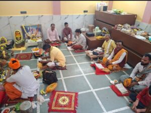 भोपाल। श्री उदासीन आश्रम मरघटिया महावीर मंदिर शाहजहाँनाबाद भोपाल में नवरात्र के द्वितीय दिवस में मां भगवती का राजोपचार,पूर्वक, पूजन संपन्न कराया गया। यज्ञाचार्य, पंडित गंगा प्रसाद आचार्य के द्वारा,पीठार्चन, मां भगवती का महा अभिषेक,,तथा, कन्या एवं बटुक पूजन के साथ, वैदिक ब्राह्मण के द्वारा सप्तशती का पाठ एवं बीज मंत्र का जाप, किया जा रहा है। दुर्गापाठी, वैदिक ब्राह्मण पंडित नारायण प्रसाद , आचार्य पंडित राधेश्याम शास्त्री ,पंडित उमाशंकर शास्त्री, पंडित विष्णु प्रसाद शास्त्री ,पंडित मनीष शास्त्री पंडित पवन कुमार पारे, पंडित सर्वेश त्रिपाठी, पंडित हरिप्रसाद शास्त्री पंडित चेतन,पारे, एवं पंडित विपिन त्रिपाठी आदि विद्वानों के द्वारा किया जा रहा है दुर्गा सप्तशती पाठ, आश्रम के श्री महंत 1008 श्री कन्हैया दास जी महाराज उदासीन के मार्गदर्शन में विश्व कल्याण की मंगल कामना से किया जा रहा है शतचंडी, महायज्ञ में यजमानों के द्वारा समुचित रूप से पूजन अर्चन, महाआरती,कर धर्म लाभ अर्जित किया जा रहा है।