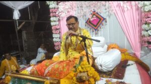 कथा के दौरान श्रद्धालु भजन-कीर्तन में शामिल होकर “राधे-राधे” के जयकारे लगाते रहे। पूरे पंडाल में शांत और धार्मिक वातावरण बना रहा।