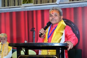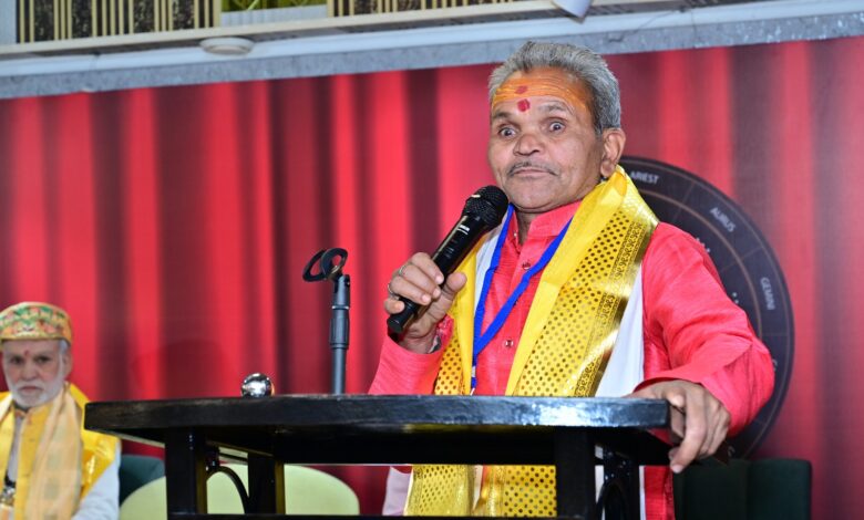भोपाल में आयोजित ज्योतिष सम्मेलन में 12 अप्रैल को वक्तव्य देते हुए धर्माधिकारी, पंडित गंगा प्रसाद आचार्य