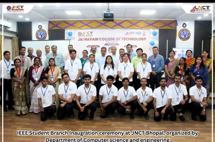 भोपाल, 15 अप्रैल 2026: इंस्टीट्यूट ऑफ इलेक्ट्रिकल एंड इलेक्ट्रॉनिक्स इंजीनियर्स (IEEE) स्टूडेंट ब्रांच का उद्घाटन समारोह जय नारायण कॉलेज ऑफ टेक्नोलॉजी, भोपाल में 15 अप्रैल 2026 को प्रातः 10:00 बजे JNCT ऑडिटोरियम में सफलतापूर्वक आयोजित किया गया। इस कार्यक्रम में लगभग 300 विद्यार्थियों ने उत्साहपूर्वक भाग लिया, साथ ही संकाय सदस्यों की भी उपस्थिति रही।