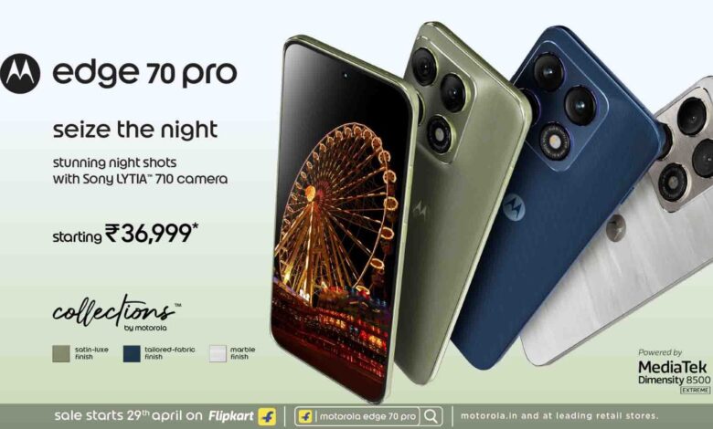 motorola edge 70 pro की बिक्री 29 अप्रैल 2026 को दोपहर 12 बजे से फ्लिपकार्ट, Motorola.in और भारत भर के प्रमुख रिटेल स्टोर्स पर शुरू होगी, जिसकी प्रभावी लॉन्च कीमत मात्र 36,999* रुपये से शुरू होगी।