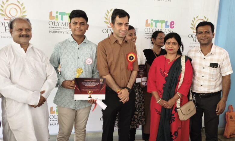 सम्मान समारोह: राष्ट्रीय मीडिया प्रभारी अरुण सोनी व अन्य गणमान्यों ने प्रियांक की उपलब्धि को ओलंपस हाई स्कूल में सम्मान करते हुए सराहा