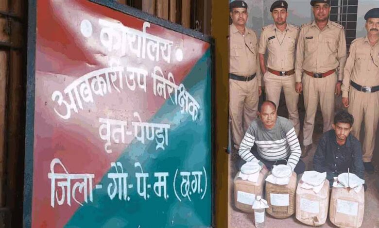 पेंड्रा से सटे बंधी गांव में लगातार कच्ची अवैध महुआ शराब बनाने और उसके बिक्री करने की शिकायत लगातार आबकारी विभाग के उप निरीक्षक दीपक सिंह ठाकुर को मिल रही थी। जिसके बाद आबकारी विभाग भी मौके की तलाश में था, तभी आबकारी विभाग को मुखबिरों से सूचना मिली कि पेंड्रा के बंधी गांव में रहने वाले रमेश साहू और सुजीत साहू बड़ी मात्रा में अवैध तरीके से देशी महुआ शराब बना रहे हैं। जिसके बाद आबकारी विभाग की टीम उप निरीक्षक दीपक सिंह ठाकुर के नेतृत्व में पेंड्रा थानाक्षेत्र के बंधी गांव में दबिश देते हुए रमेश साहू और सुजीत साहू के ठिकाने पर दबिश दी और वहां से भारी मात्रा में देशी कच्ची महुआ शराब और महुआ के वाहन को जब्त किया है। मामले में आबकारी विभाग दो प्रकरणों में 56 लीटर कच्ची देशी महुआ शराब को जब्त किया। जबकि 585 किलोग्राम महुआ का वाहन भी आबकारी विभाग के द्वारा जब्त किया है।