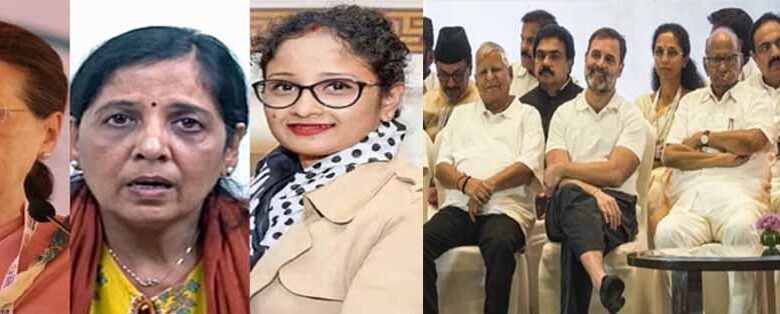 INDIA गठबंधन की 'महारैली' को संबोधित करते हुए दिल्ली के CM अरविंद केजरीवाल की पत्नी सुनीता केजरीवाल ने कहा, "मोदी जी ने मेरे पति को जेल में डाल दिया, क्या प्रधानमंत्री ने सही किया? क्या आप मानते हैं कि केजरीवाल एक सच्चे देश भक्त और ईमानदार व्यक्ति हैं? क्या केजरीवाल जी को इस्तीफा देना चाहिए? आपके केजरीवाल शेर हैं, ये ज़्यादा दिन तक आपको जेल में नहीं रख पाएंगे…" सुनीता केजरीवाल ने कहा, "…यदि आप सब INDIA गठबंधन को मौका देते हैं तो हम सब मिल कर एक ऐसे महान राष्ट्र का निर्माण करेंगे, केवल नाम में INDIA गठबंधन नहीं हैं बल्कि दिल में INDIA है… मैं(अरविंद केजरीवाल) INDIA गठबंधन की ओर से 140 करोड़ भारतवासियों को 6 गारंटी देता हूं… पहला-पूरे देश में 24 घंटे बिजली का इतज़ाम करेंगे, दूसरा- पूरे देश के गरीबों की बिजली फ्री करेंगे, तीसरी- हर गांव हर मोहल्ले में शानदार सरकारी स्कूल बनाएंगे, चौथा- हर गांव में मोहल्ला क्लिनिक बनाएंगे, फ्री इलाज की व्यवस्था करेंगे, पांचवां- किसानों को स्वामीनाथन आयोग के मुताबिक MSP पर फसलों की कीमत दिलवाएंगे, छठी- दिल्ली वासियों को उनका हक दिलाएंगे, दिल्ली को पूर्ण राज्य का दर्जा दिलाएंगे… यह ऐलान करने से पहले मैंने INDIA गठबंधन के साथियों से उनकी अनुमति नहीं ली लेकिन उम्मीद है कि किसी को इस पर आपत्ति नहीं होगी… यह गारंटी हम अगले पांच वर्ष में पूरी करेंगे।"