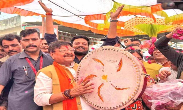 विजयवर्गीय जनजाति नर्तक टोली के बिच पहुंचकर मादल बजाय