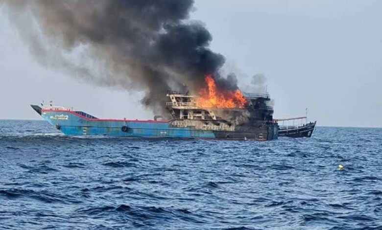 थाईलैंड की खाड़ी में जहाज में लगी भीषण आग, बचने के लिए समुद्र में कूदे लोग