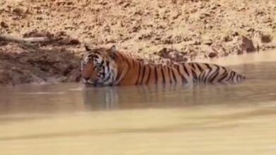 पानी में उतरा बाघिन डॉटी का शावक, बांधवगढ़ नेशनल पार्क में बाघों को सताने लगी गर्मी