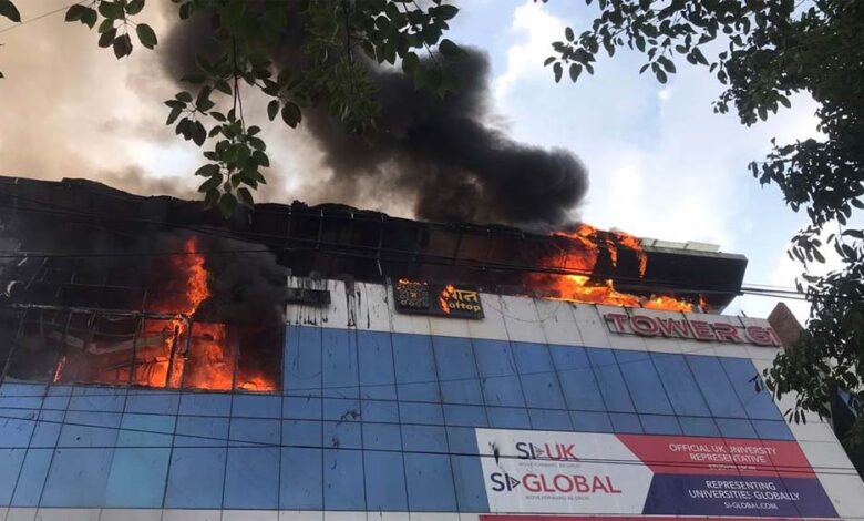 इस बिल्डिंग में नीचे बंधन बैंक भी है। आग से बीआरटीएस पर जाम लग गया। जिस बिल्डिंग में आग लगी है, उसके पास वाली सफायर ट्विंस में भी आग लग गई है। जिस समय बिल्डिंग में आग लगी, उसमें काफी लोग थे, जिन्हें सुरक्षित बाहर निकाला गया। पुलिस एक घंटे तक आग बुझाने में जुटी रही। मौके पर एसडीआरएफ की टीम भी पहुंची है। एडिशनल पुलिस कमिश्नर अमित सिंह और फायर एसपी शशिकांत कनकने भी मौके पर पहुंचे।
