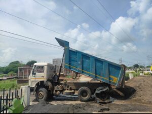 रेत खाली करता हाईवा ट्रांसमिशन लाइन से टकराया, टला बड़ा हादसा
