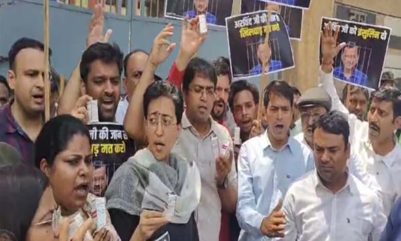 'आप' नेता और कार्यकर्ता तिहाड़ जेल प्रशासन के खिलाफ प्रदर्शन कर रहे हैं। सभी के हाथों में इंसुलिन है। वह 'अरविंद जी को इंसुलिन दो' के नारे लगा रहे हैं। दरअसल, 'आप' का आरोप है कि जानबूझ कर उनके सबसे बड़े नेता को इंसुलिन नहीं दिया जा रहा है। वहीं इस मामले पर तिहाड़ का कहना है कि सीएम केजरीवाल ने गिरफ्तारी से महीनों पहले इंसुलिन लेना बंद कर दिया था।