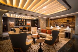शैम्पेन बारः पारंपरिक भारतीय मोटिफ्स से युक्त यह आधुनिक-लक्ज़री स्टाइल का बार ’फर्स्ट क्लास’ लाउंज की विशेष खासियत है। शैम्पेन के साथ क्लासिक और सिग्नेचर कॉकटेल सर्व करने वाले इसके क्रिस्टल चमकदार इफ़ेक्ट देते हैं, यह लक्ज़री के नए मानक स्थापित करने वाला पिक्चर-परफेक्ट लोकेशन है।