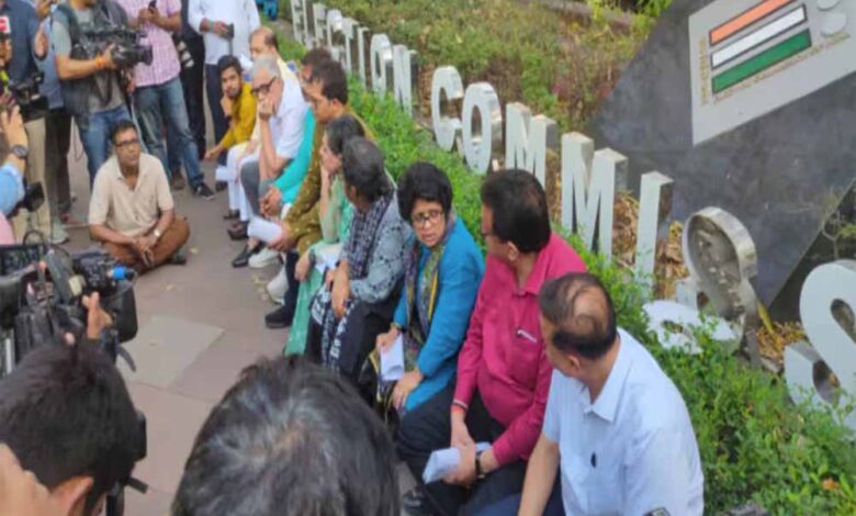 जांच एजेंसियों के कथित दुरुपयोग को लेकर शिकायत करने पहुंचे टीएमसी के कम से कम 10 सांसद धरने पर बैठे