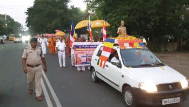 पूज्य भन्ते प्रज्ञारत्न जी का वर्षावास समापन समारोह सम्पन्न चीवर रैली का उपासकों ने फुलों का वर्षाव कर किया भव्य स्वागत