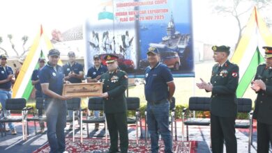 लेफ्टिनेंट जनरल अरविंद चौहान, YSM, SM, GOC, सुदर्शन चक्र कोर ने भोपाल आर्मी कैंट में भारतीय नौसेना कार अभियान को हरी झंडी दिखाई