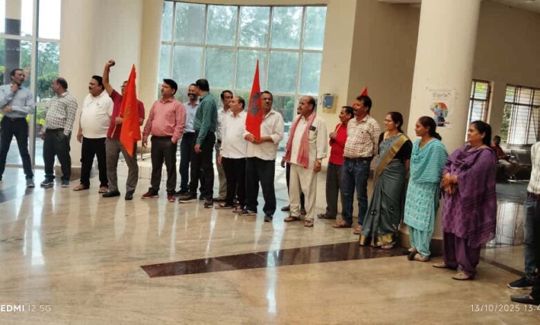 राजीव गांधी प्रौद्योगिकी विश्वविद्यालय में भारतीय मजदूर संघ ने आंदोलन का किया आगाज।
