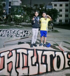 भोपाल के 7 साल के प्रत्यक्ष दुबे और 9 साल के विवान दुबे ने राज्य स्तरीय स्केटबोर्डिंग प्रतियोगिता में जीते पदक