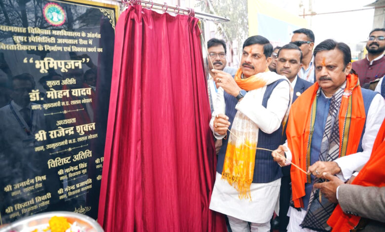 मुख्यमंत्री डॉ. यादव ने किया रीवा मेडिकल कॉलेज में स्पेशल कैंसर यूनिट का भूमि-पूजन श्याम शाह चिकित्सा महाविद्यालय के विस्तारीकरण के लिए लगभग 350 करोड़ के विकास कार्यों का भूमि-पूजन रीवा महाविद्यालय का नया अस्पताल भवन बनने 2400 से अधिक होगी बेड से क्षमता भोपाल, इंदौर, उज्जैन और जबलपुर में भी अत्याधुनिक मशीनों से कैंसर मरीजों को मिलेगा इलाज मध्यप्रदेश में मेडिकल एजुकेशन के अंडर ग्रेजुएशन की सीटें बढ़कर हुई 5500 हर साल 10 हजार डॉक्टर मेडिकल की पढ़ाई खत्म कर देंगे सेवाएं चिकित्सा सुविधाओं के विकास में राज्य सरकार के लिए ग्रामीण और शहरी क्षेत्रों का महत्व एक समान