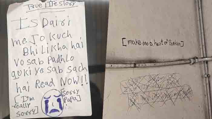 कमरे से मिले सुसाइड नोट में किशोरियों ने पापा से माफी मांगी है। साथ ही एक डायरी का जिक्र भी किया है। नोट में लिखा है कि ‘इस डायरी में जो कुछ भी लिखा है, वो सब पढ़ लो क्योंकि ये सब सच है। आई एम सॉरी, पापा।’ सुसाइड नोट में एक इमोजी भी बना है, जिसमें एक लड़की रोते हुए दिखाई गई है।’ हालांकि, नोट में जिस डायरी का जिक्र उन्होंने किया गया है, उसकी पूरी डिटेल अभी तक सामने नहीं आ पाई हैं।