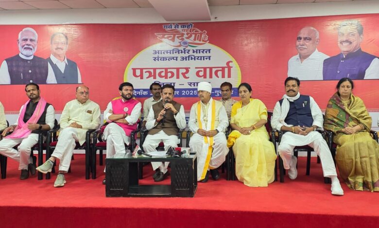 सागर में आत्मनिर्भर भारत स्वदेशी संकल्प अभियान के अंतर्गत उपमुख्यमंत्री एवं प्रभारी मंत्री ने पत्रकार वार्ता को संबोधित किया
