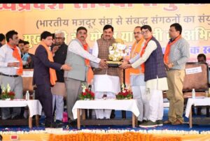 सम्मेलन में मुख्यमंत्री डॉ. यादव का श्री कुलदीप सिंह गुर्जर, श्री दिनेश सिंह तोमर, श्री गोविंद श्रीवास्तव, श्री दुर्गेश तिवारी तथा संयुक्त संघर्ष मंच के प्रतिनिधियों ने स्वागत किया। श्री दिनेश तोमर ने कहा कि मध्यप्रदेश संविदा संयुक्त संघर्ष मंच में प्रदेश के 34 विभागों के अधिकारी एवं कर्मचारी शामिल हैं। मुख्यमंत्री डॉ. यादव के नेतृत्व में प्रदेश सरकार कर्मचारी हित में निरंतर कार्य कर रही है। भारतीय मजदूर संघ ने प्रदेश के संविदा कर्मचारियों की मांगों को समझा है। प्रदेश महामंत्री श्री कुलदीप सिंह गुर्जर ने भी संबोधित किया। सम्मेलन में बड़ी संख्या में प्रदेशभर से पधारे संविदा अधिकारी एवं कर्मचारी उपस्थित थे।