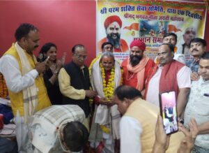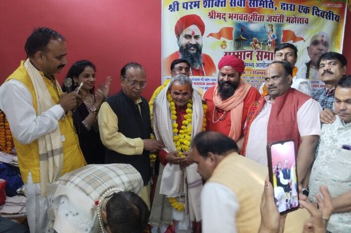 गीता जयंती पर मरघटिया मंदिर में विद्वानों का किया गया सम्मान