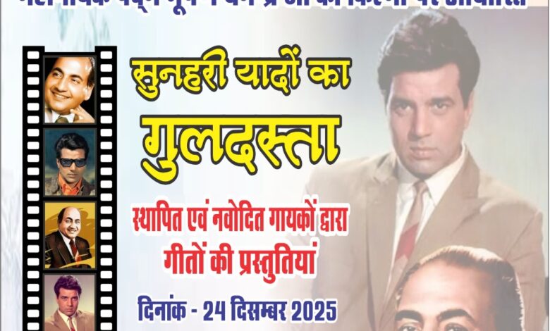 स्व. मोहम्मद रफ़ी और स्व. धर्मेंद्र पर आधारित, “सुनहरी यादों का गुलदस्ता 24 दिसंबर को